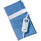 Includes 3 heat settings and absorbent sponge for moist heat.Automatic off. Machine washable cloth cover.